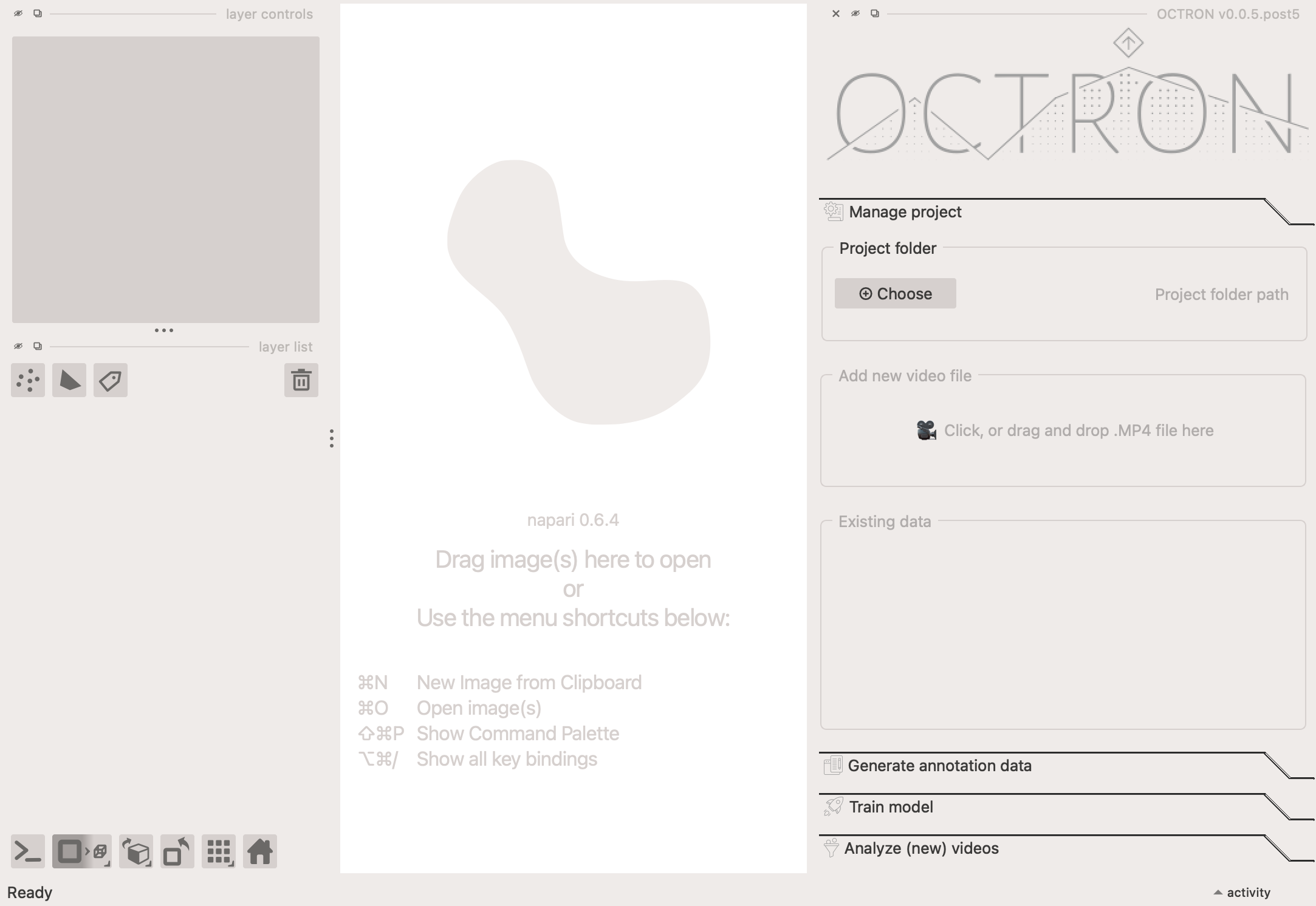 To open OCTRON together with napari, first conda activate your newly created environment.
